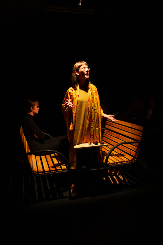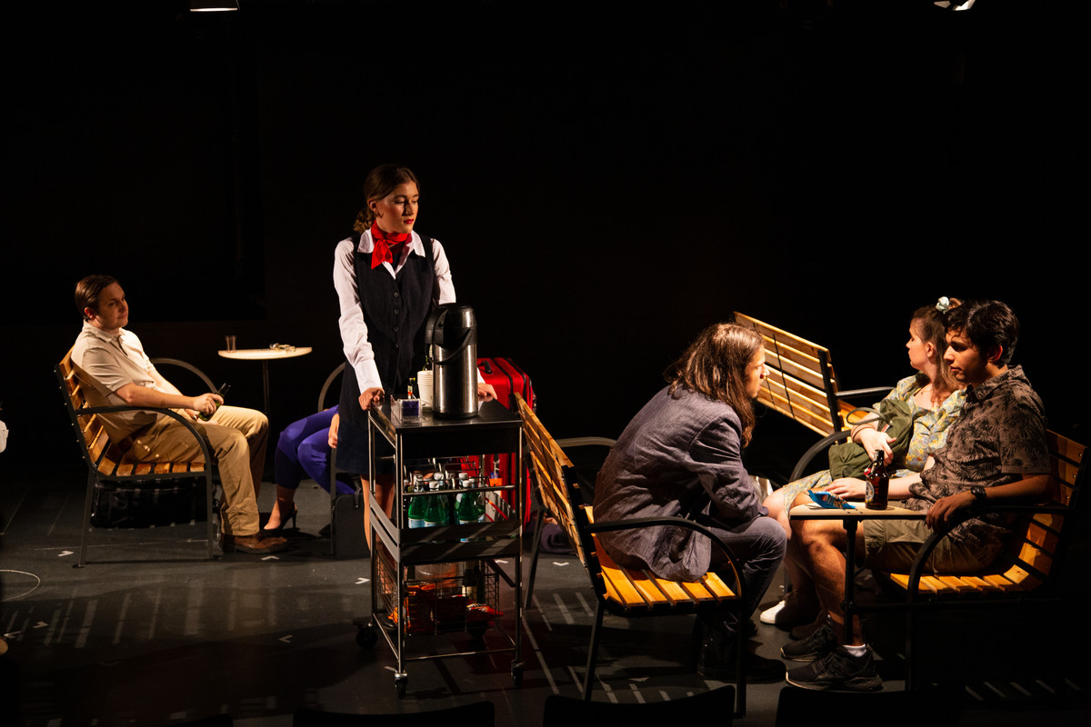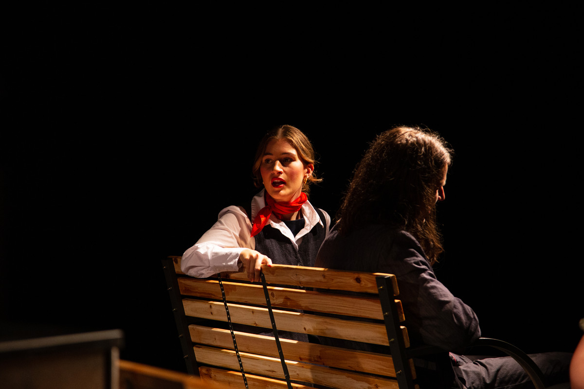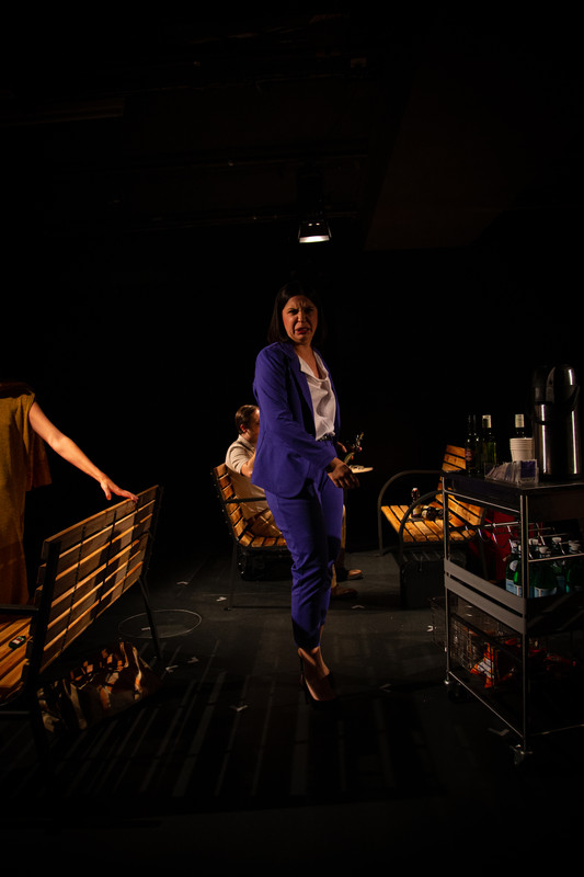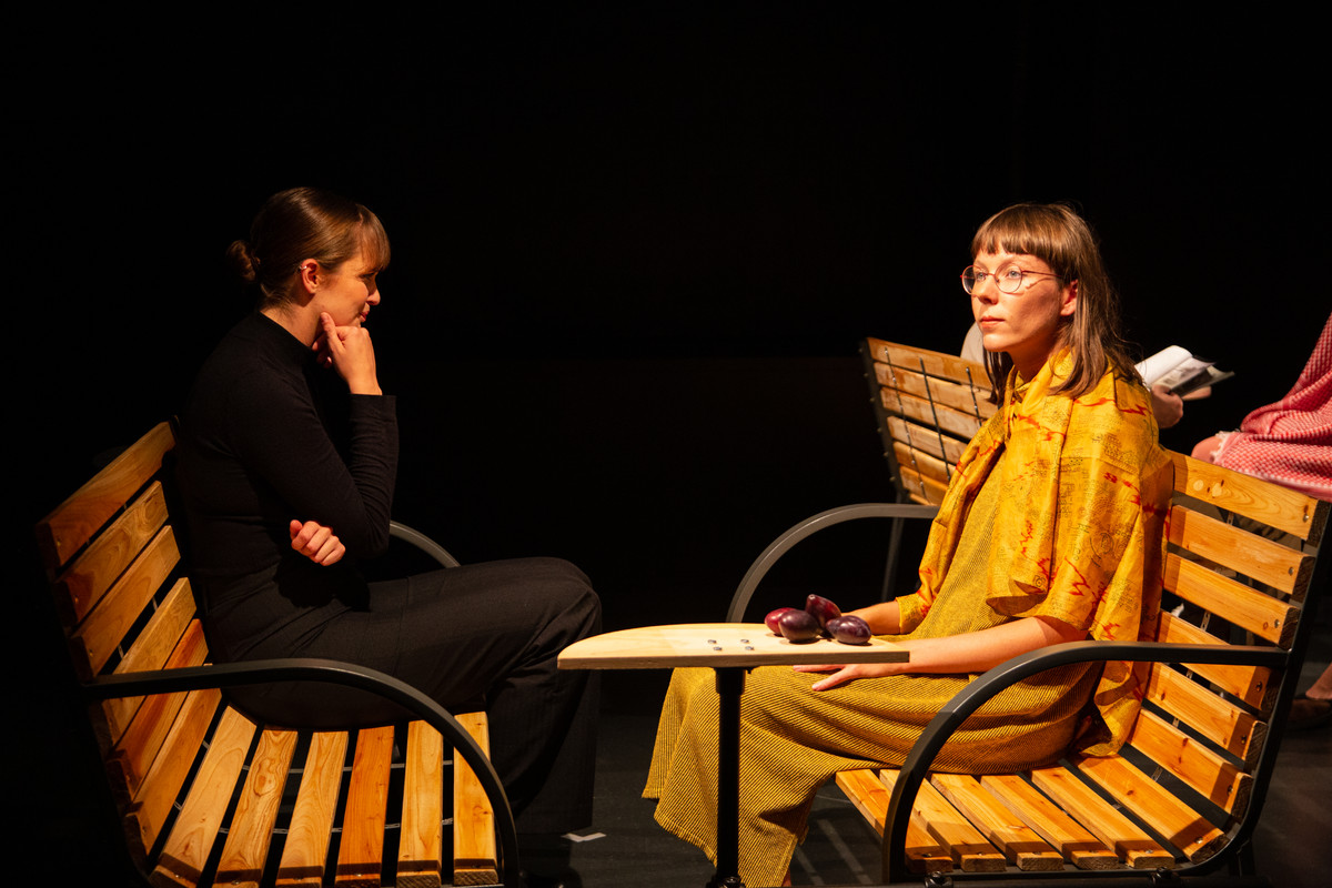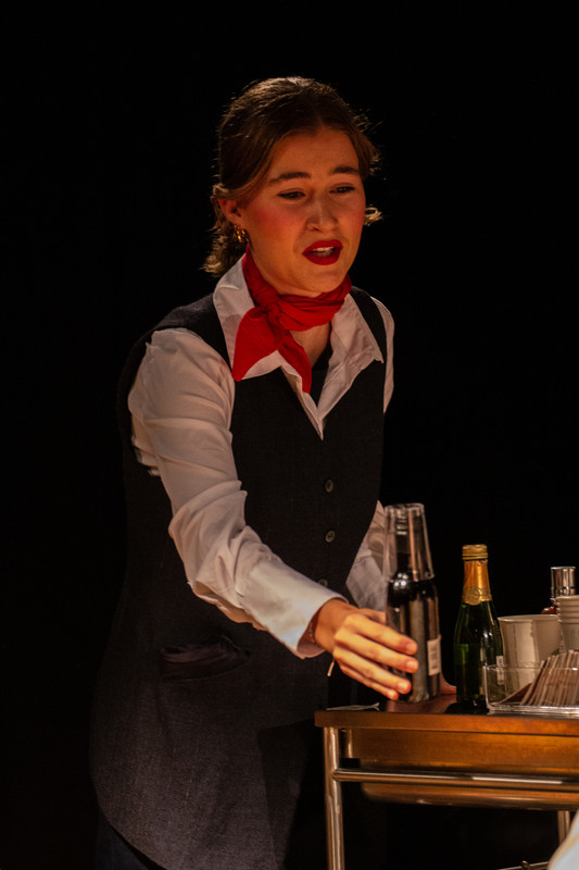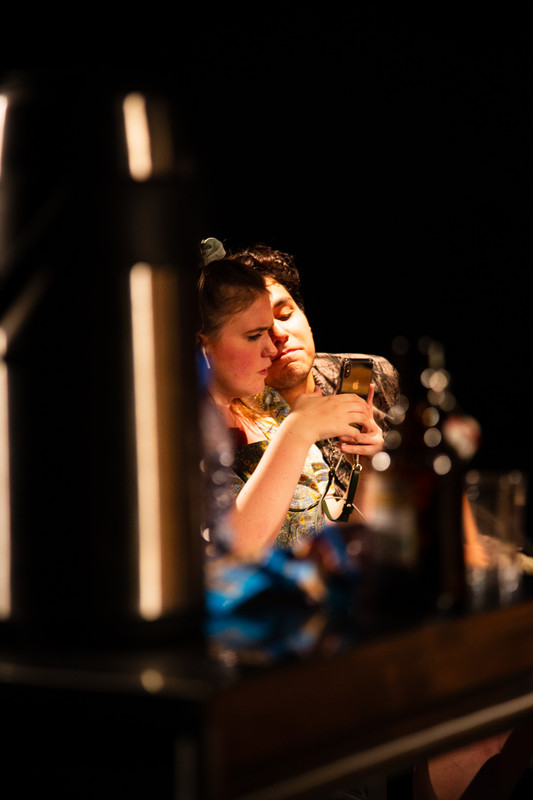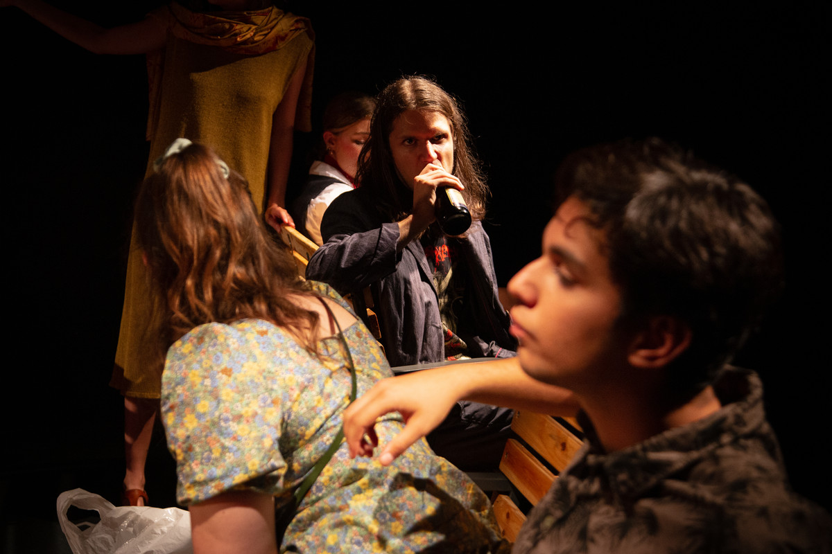 Plänen, Ängsten und Lebenstheorien zuzureden, während der Alkoholpegel laufend steigt. Das Ganze resultiert in einer absurden Gesprächsmelodie, die die Handlung des Stückes ausmacht.